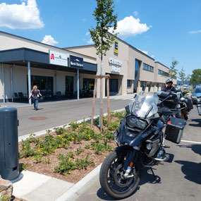 On fait le plein à la station service TotalEnergies sur la Lerchenauer Straße, Patrice prend contact avec la réception de l'hôtel et nous mène ensuite jusqu'au parking de celui-ci.